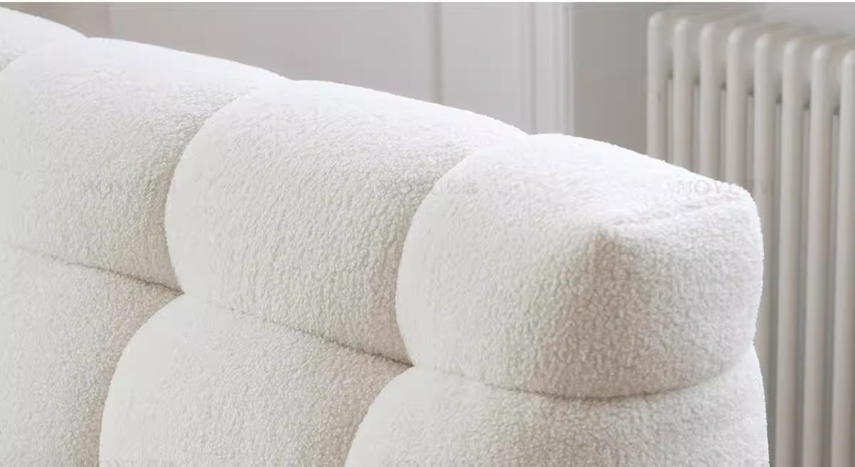 Голосовое изголовье в форме дуги + дизайн полной подушки уменьшает ощущение краев и углов и создает теплую и ленивую атмосферу спальни.